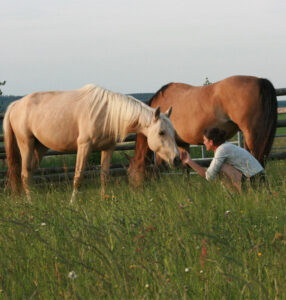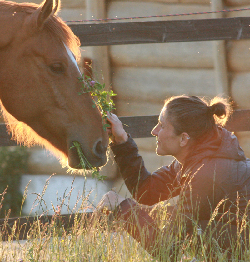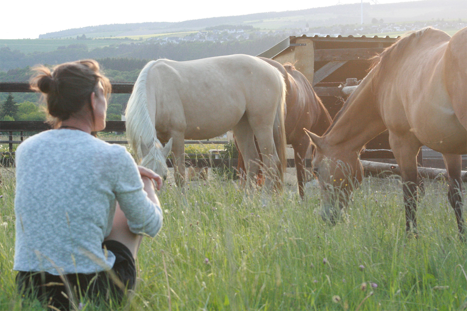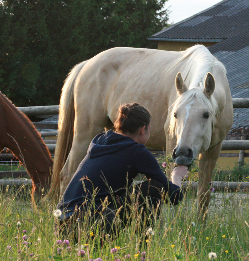 Die Arbeit rund ums Pferd zentriert uns und berührt uns ganz tief in unserem Sein. Der Fokus verlagert sich, alles wird langsamer, alles wird einfacher, alles wird ruhig. In unserer gemeinsamen Zeit können wir ganz eintauchen in das Gespann Pferd-Mensch und eine Einheit werden, im Gleichklang sein, zentriert sein.